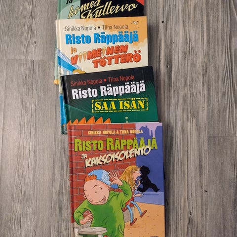 Kaksi Sinikka & Tiina Nopolan Risto Räppääjä -kirjaa. Myydään yhdessä tai erikseen a 5 e/ kpl. Yhdessä 10 euroa.
