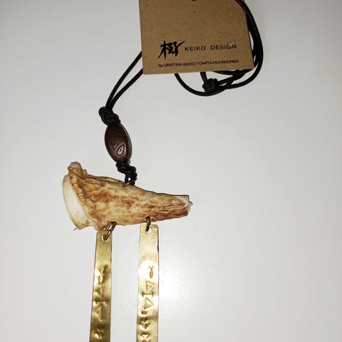 Asiasanoja: uusi , käyttämätön , lahja , lahjaksi , Lappi , lappland , made in Finland , kotimainen design , pohjoinen kaulakoru , luu , poronluu , Keiko design , syntymäpäivälahja , joululahja , valmistumislahja , tuparilahja , hopealaatta , hopeinen laatta