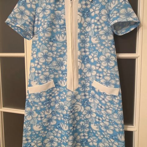 Musta Finn Karelia vintage mekko, koko C36. Materiaali polyesteri. Lisätty valkopilkullinen frillahelma.