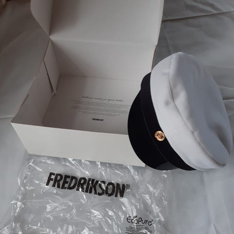Fredrikson yo-lakki koko 54, käytön jälkeä sisäpuolella, päällisin puolin hyvin siisti.
