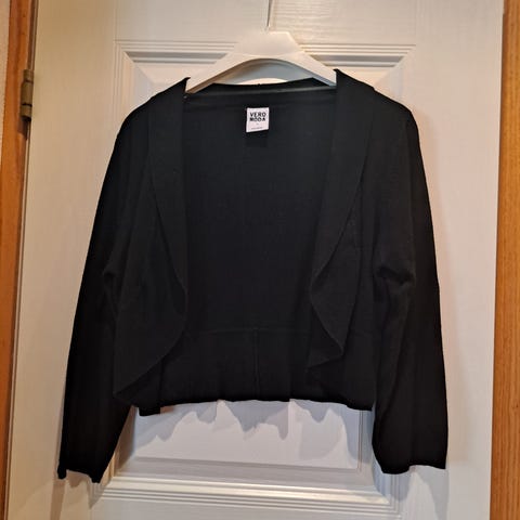 Siisti musta neulebolero. Kokolappu puuttuu, mutta on varmaan M.