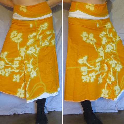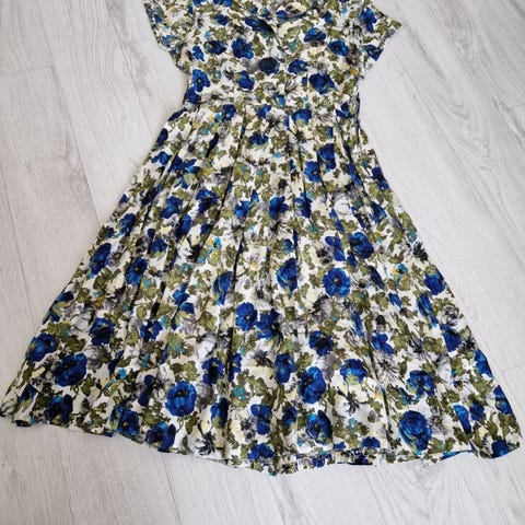Hameessa on vetoketju sivussa ja vuori. Hameen tarkemmat mitat: vyötärönympärys 68 cm ja vyötärö-helmamitta 60 cm.
