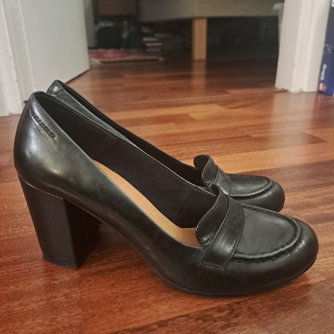 Myydään mustat kiilakorot, koko 39. Koron korkeus noin 9cm. Nahkaa.