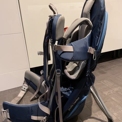 Kantorinkka on käytetty vain yhden retken ajan, joten kunto on lähes uudenveroinen. Mukana kätevä aurinko-/sadesuoja, joka pitää lapsen suojassa säällä kuin säällä. Reppu on säädettävä, joten sen saa helposti istumaan kantajalle, ja lisäksi siinä on käytännöllinen säilytystasku tavaroille. Tyylikäs sininen väri.