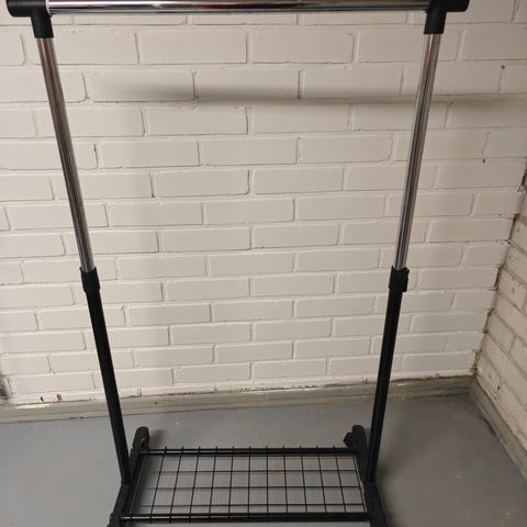 Seinäteline. Irrotettavat ja siirreltävät korit telineessä.