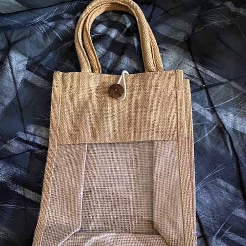Vuosia sitten ostettu vuorellinen juhlapussukka, joka ollut mukana yksissä juhlissa.