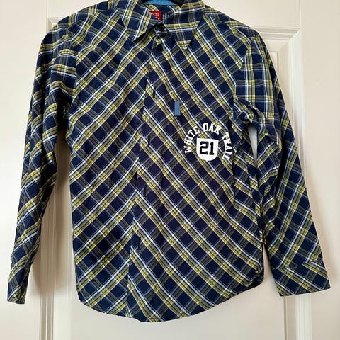 Vaaleansininen poikien kauluspaita, koko 122. 100% puuvillaa.