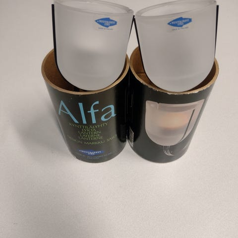 Markku Salon ja Nuutajärven lasin tuotantoa oleva tunnelmanluoja, tuikkukruunu Alfa muutaman vuosikymmenen takaa.