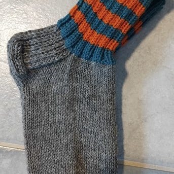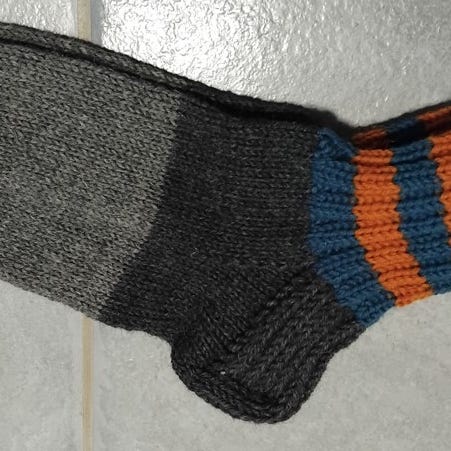 kuvanmukaiset miesten villasukat, koko 44-45. Neulottu seitsemän veljestä yksivärisestä ja Nature langasta.