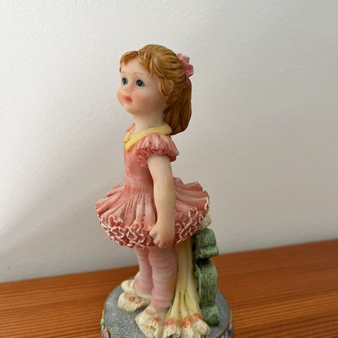 Koriste balettitassija muovia, vaalean punaisella organza hameella, jossa hopean värinen reuna/ripustus naru. Korkeus hameen kohdalla n. 3,5cm, leveimmillään n. 14cm, syvimmillään n. 6cm. Käyttämätön.