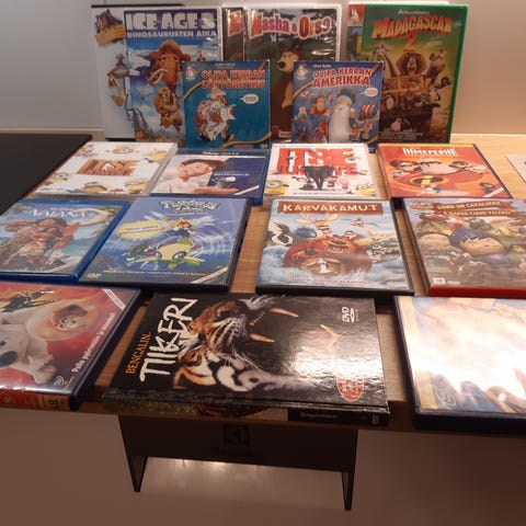 Lasten elokuvia KYMPILLÄ 6 kappaletta. Myyn vain settinä. VAIN NOUTO kotoa Keljonkankaantieltä käteisellä. EI LÄHETYSTÄ. Ethän turhaan kysele lähetystä.