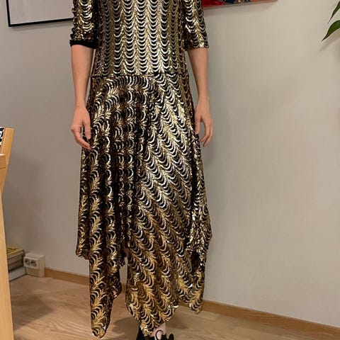 Upea kultapaljettinen Ida Sjöstedt -mekko