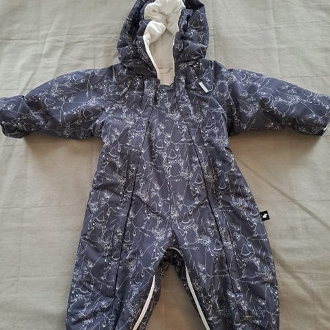 Todella hyväkuntoinen haalari, vain vaunuissa käytetty. Koko 69/74. Uusi käyttämätön pipo 44-46 cm.