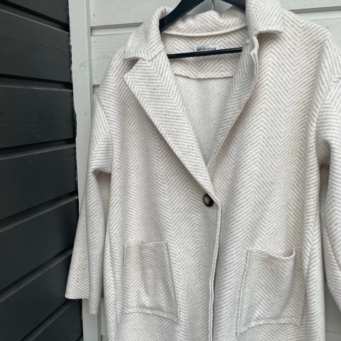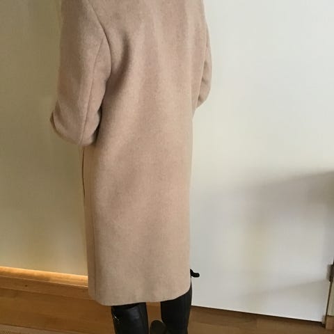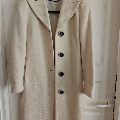 Ihana, pörröinen villakangastakki, oversize koko. Ajaton, kaunis malli. Lasketut olkapäät. Kai-kai noin 56cm. Nappikiinnitys. Hieman nyppyä, joka ei juuri erotu takin tekstuurin vuoksi. 50%villaa. Kuvassa S/M kokoisen päällä.