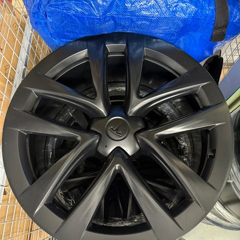 Kyseessä Teslan alkuperäiset 22” Turbine -alumiinivanteet, joihin on asennettu uudet Continental SportContact 6 -kesärenkaat 265/35 R22 eteen ja 285/35 R22 taakse. Sarja on pesty ja kuvattu.
