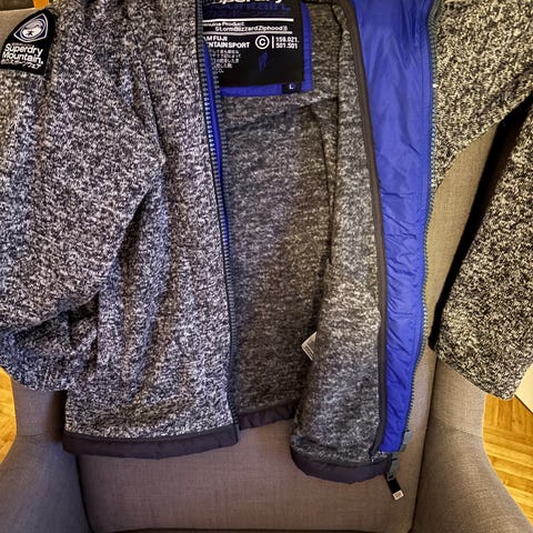 Superdry M20200PN takki miehille, koko L. Takki/huppari on harmaa ja sisältää jossa on sininen sisä huppu sekä harmaa huppu. Sininen efekti kaistale edessä vetoketjulla. . Materiaalitiedot löytyvät etiketistä, ja takissa on Superdry Mountain -merkki. Soveltuu ulkokäyttöön.