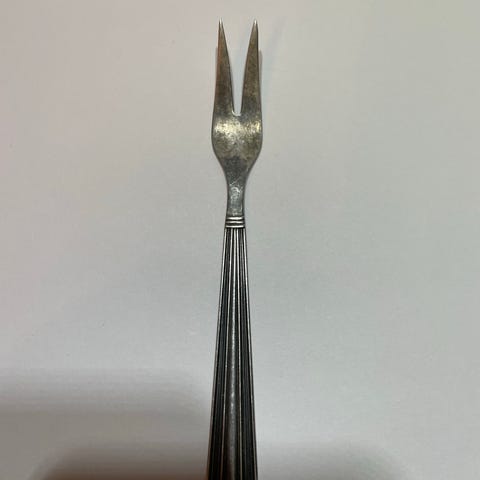 Ruusu hopeinen leikkelehaarukka,leima näkyy kuvassa.