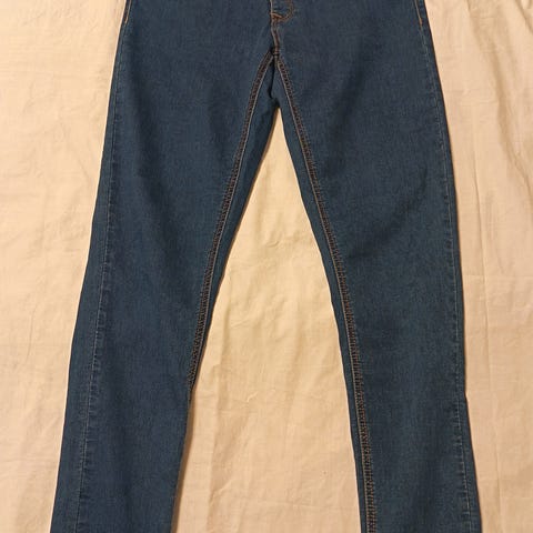 Sinisissä housuissa lantiolla joustopalat.
