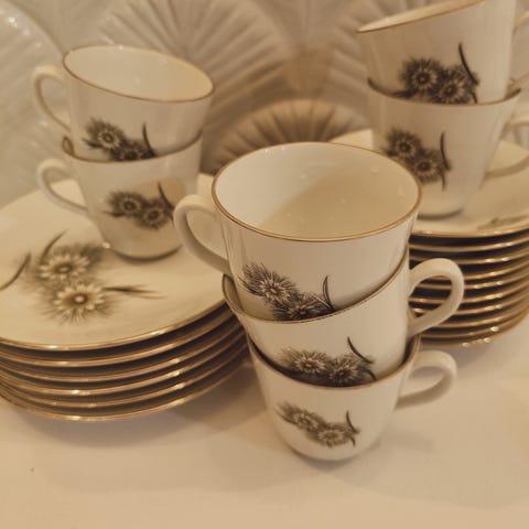 Myytävänä herkän kaunista Rörstrandin "Rose" 🌹kahviastiastoa Materiali posliini. Astioiden reunoissa"kultaukset"