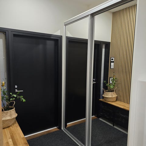 Uudet liukuovet paketissa. Sopivat aukkoon 2580 x 1397. Kabinetti kirkaspeili ja 250 valkoinen kehys
