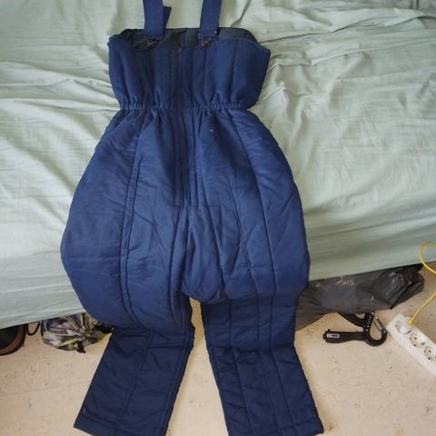 Vuorina tässä haalarissa on valkoinen, vanutikattu kangas, pulleutta vielä reilusti tallella.