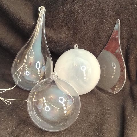 Kankaiset kuusenpallot. Tummansiniset, kiiltävä vaaleansininen ja ruudulliset. Noin 30kpl. Hp10e