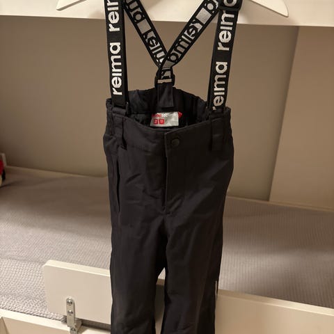 Myydään Reiman mustat toppahousut koossa 92. Housuissa henkselit ja lahkeissa nepparikiristys. Housut ovat muuten todella hyväkuntoiset, mutta vetoketjun yläpuolen painonapin vastakappele irronnut (viimeinen kuva). Meillä tämä ei ole haitannut käyttöä, koska vetoketju pitää hyvin.