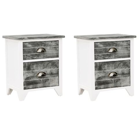 vidaXL Yöpöytä 2 laatikolla 2 kpl keisaripuu ja vaneri ruskea ja valk.(sku242042