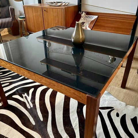 Alvar Aallon suunnittelema sohva pöytä renkailla, valkoiset metalli putket , kaksi tasoinen lasitettu taso. Renkaat alla.