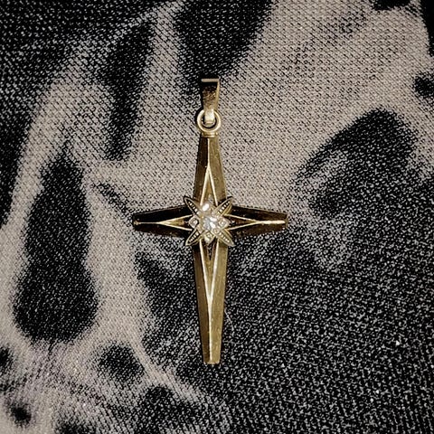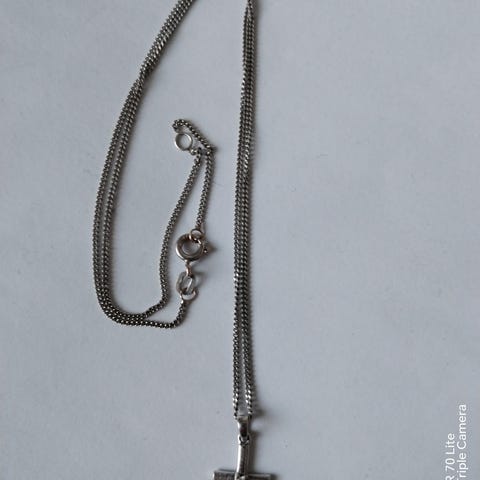32 cm ketju ja kaunis timanttileikattu risti 2 cm kork.. 545 JP leima. Kultaa molemmat