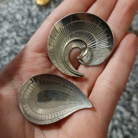 Koristeellinen hopeinen rintakoru (John Lauritzen?), siisti kunto. Leimattu. Halkaisija noin 3,5cm. Nouto, pikkupaketti 7e tai toridiili. En mieluusti tingi tai varaile.