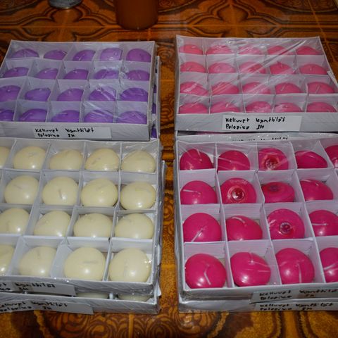 Kaksi cooee kynttelikköä ja mustat kynttilät.
