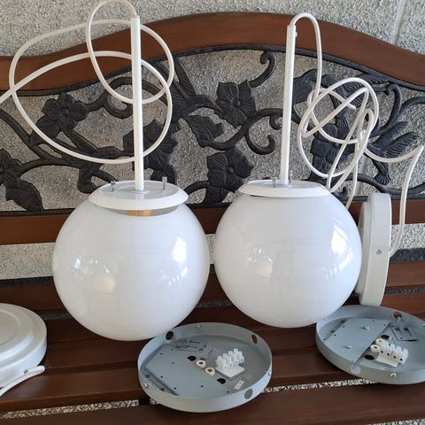 Riippu lamppu valaisin. Toimiva. Lampun sisäpinta kaipaisi putsausta, on hieman sumea, muuten siisti ja ehjä kunto.