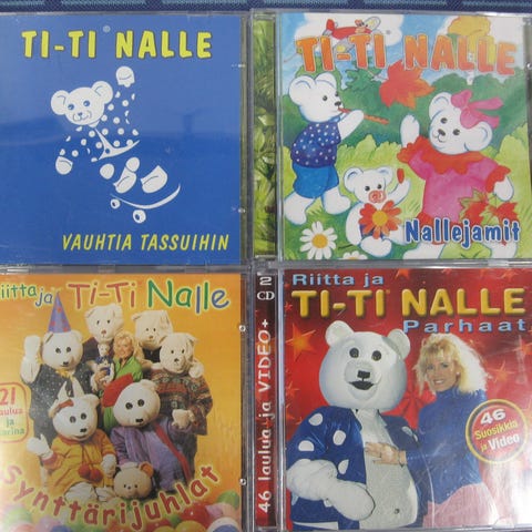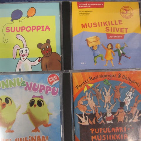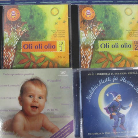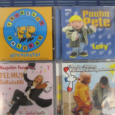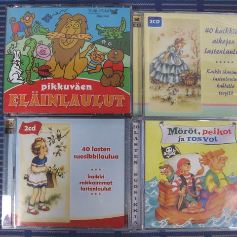 Myydään lastenlaulu cd-levyjä 3,00 euron kappale. Kaikki cd:t kuunneltu ja todettu toimiviksi. Cd:ssä voi olla naarmuja & kansipapereissa jälkiä/omistuskirjoituksia, mutta cd-kotelot ovat ehjät. Postituskulut ostajalle ja noutokin sovittavissa.