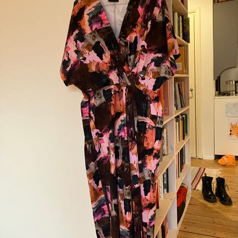 Ihana mekko, pehmeä trikoo, taskut, hieno kuosi. Mutta tämäkin on jäänyt mekkopaljoudessa käyttämättä, koten eteenpäin vain. Kunto erinomainen, ei mitään mainittavaa.
