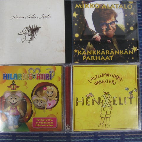 Myydään lastenlaulu cd-levyjä 3,00 euron kappale. Kaikki cd:t kuunneltu ja todettu toimiviksi. Cd:ssä voi olla naarmuja & kansipapereissa jälkiä/omistuskirjoituksia, mutta cd-kotelot ovat ehjät. Postituskulut ostajalle ja noutokin sovittavissa.
