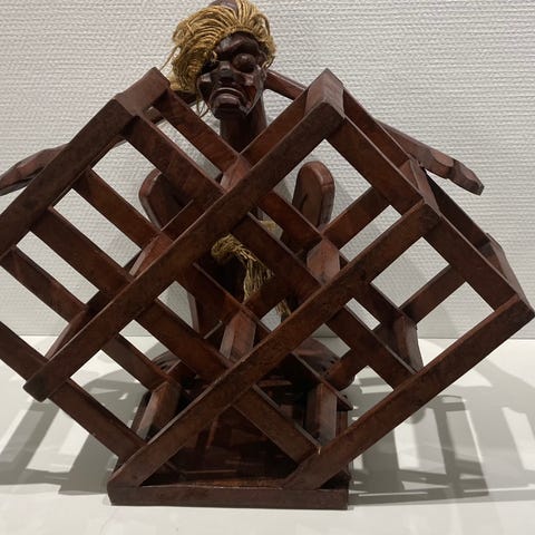 Kaunis pientä ajan patinaa omaava viinipulloteline.
