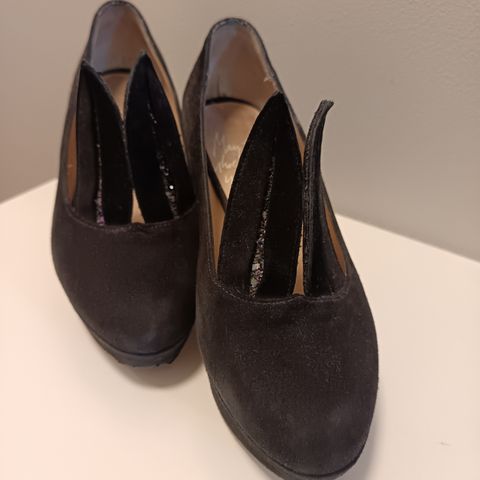 Minna Parikka korkokengät, koko 36 reilu koko minulla 37 normikengät. Violetti nahkainen materiaali. Sisältää vetoketjut ja erottuva punainen huulikoriste kengän sivulla. Naisten kenkätyyppi.