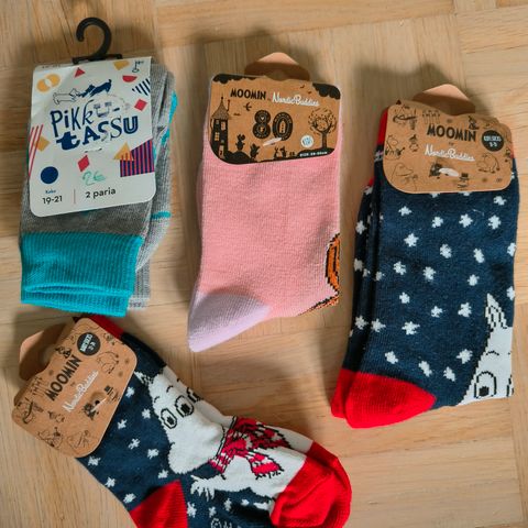 Myydään Moomin by Nordic Buddies sukat koko 24-26. Niiskuneiti sukissa ohentumaa varpaiden ja kantapään kohdalla. Pikku Myy sukissa ei kulumaa.