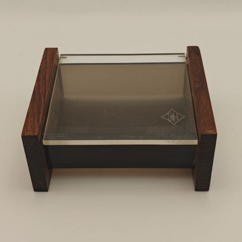 Hakusanoja: Yki Nummen rasia säilytysrasia säilytyslaatikko savukelaatikko sikarirasia käyntikorttirasia muovi akryyli puu (teak, tiikki?)