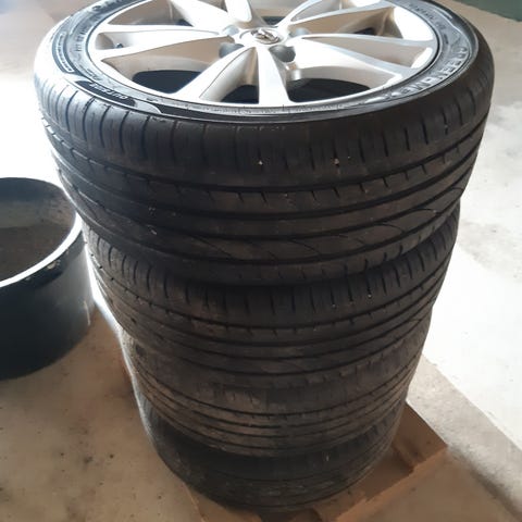 Myydään talvirengassarja Toyotan alkuperäisillä alumiinivanteilla ja Nokian Nordman 7 -nastarenkailla. Rengaskoko 215/55R17. Renkaissa pintaa tasaisesti yli 9mm. Yksi vanteiden keskikuppi puuttuu.