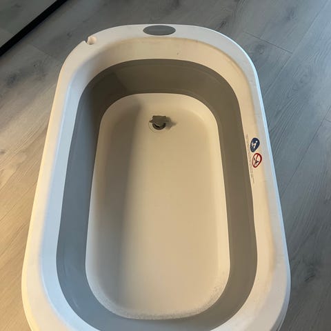 Siistissä kunnossa oleva vauvan kylpyamme, ammeen kuvassa "Nemoa etsimässä"-elokuvahahmoja. Nouto Salo.