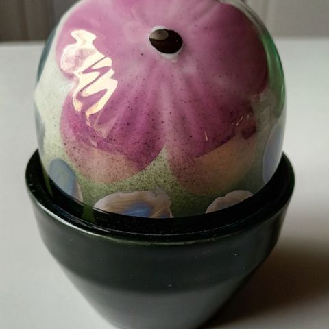 Arabian Ikikukka-sarjan sininen kellokukka on keraaminen koriste-esine, jonka on suunnitellut ja signeerannut Heljä Liukko-Sundström. Kannessa on kuvattuna sinisiä tulppaaneja ja alaosan ruukku on tummanvihreä. Ikikukan korkeus on 12cm ja ruukun halkaisija on 9,3cm. Esine on ikäänkuin aina kukkiva kukkakoriste, mutta samalla myös pieni säilytysastia. Erittäin hyvässä kunnossa. Ei kotieläimiä.