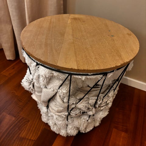 Erittäin hyvässä kunnossa oleva beigen värinen säilytysrahi. Siisti, ei vikoja tai tahroja. Ostettu muistaakseni aikanaan Sotkasta.