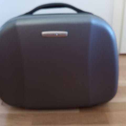 Asiakirja salkku. Lokeroita paljon, numerolukitus, nahkaa, pyörät, leveys noin 23 cm, pituus noin 45 cm ja korkeus noin 35 cm.