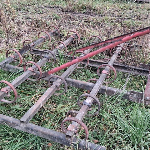 Vanha äes, vinotuet vääntyneet ja muutama piikki vääntynyt/poikki. Mukaan saa yhden uuden piikin.