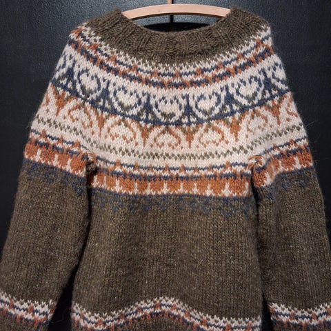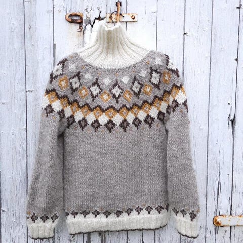 Poolokaulus tehty hieman löysemmäksi juurikin ”hiostavuuden” estämiseksi. Laadukkaalla Alaflosslopi-langalla neulottu.
