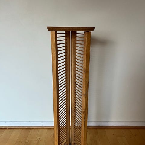 Myydään maassa seisova cd-teline n. 50 levylle. Materiaali metallia ja jalusta kiveä.