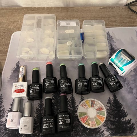 Kaikki tarvittava geelilakkaukseen kotona! Neljä lakkaa sävyt Neon pink, powder pink, snow vaikea ja pink purple. Vain yhtä käytetty paristi, loput avaamattomia. Mukaan myös lisäpullo cleaneria ja selkeät ohjeet.