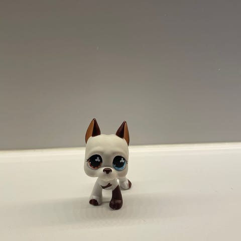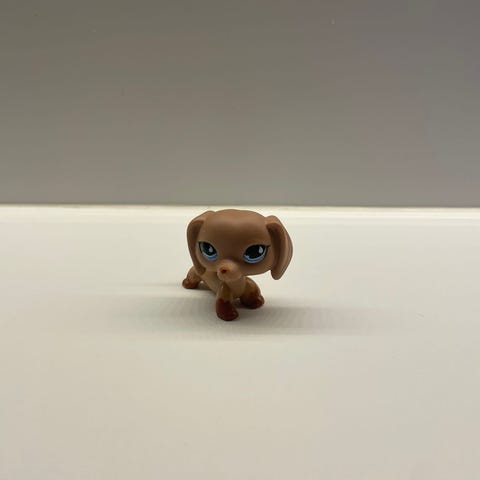 Littlest Pet Shop koira nukke, vaaleanpunainen, muovia. Pieni lelu, jossa suuret siniset silmät ja pitkä korva. Soveltuu keräilyyn tai leikkeihin.